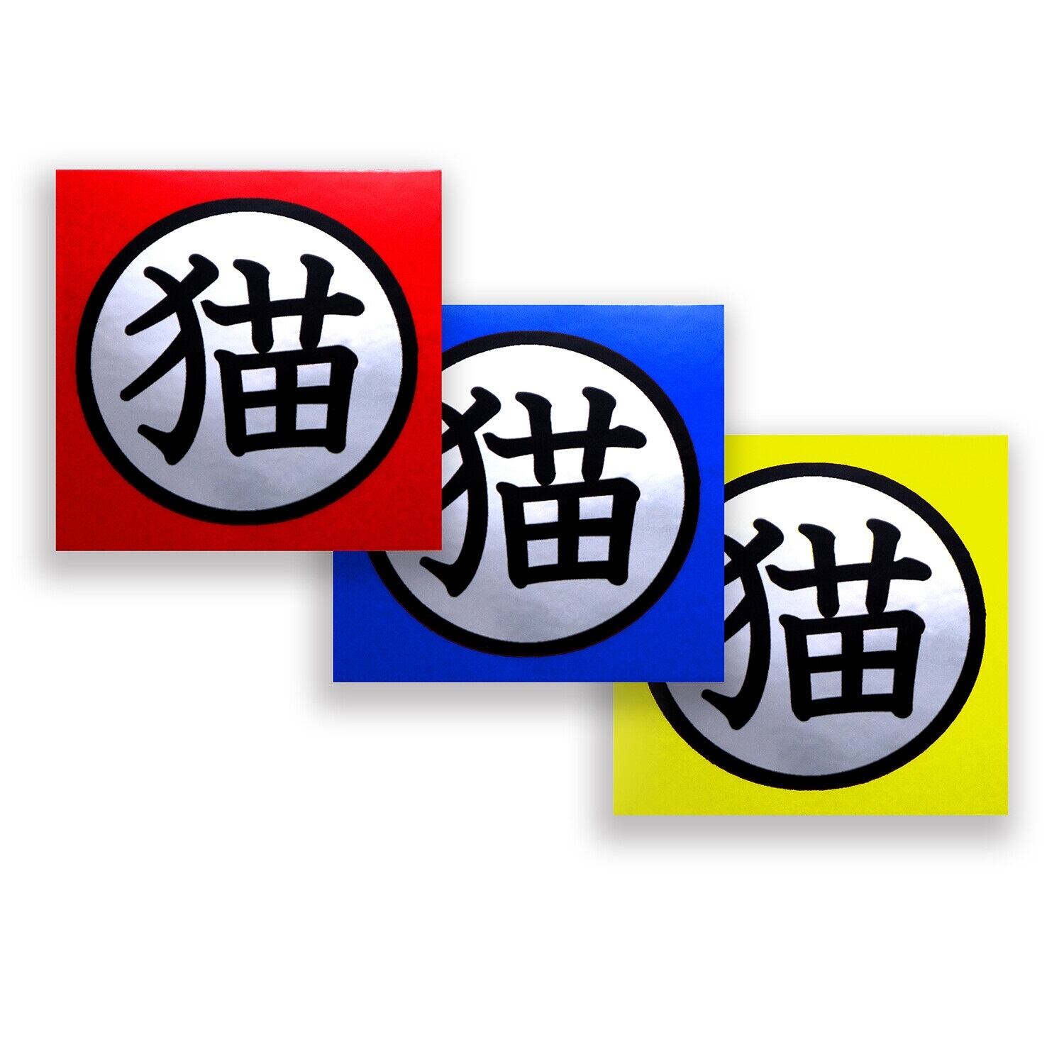 ●玄関や門などで目にする犬シールを忠実に再現した銀ツヤ、鏡面の猫ステッカー 、赤・青・黄色 各1枚入りの3色セットです。写真ではお伝えしづらいですが黒い円の内側の文字を除いた背景部分は、シルバーの銀ツヤで鏡面素材です。
